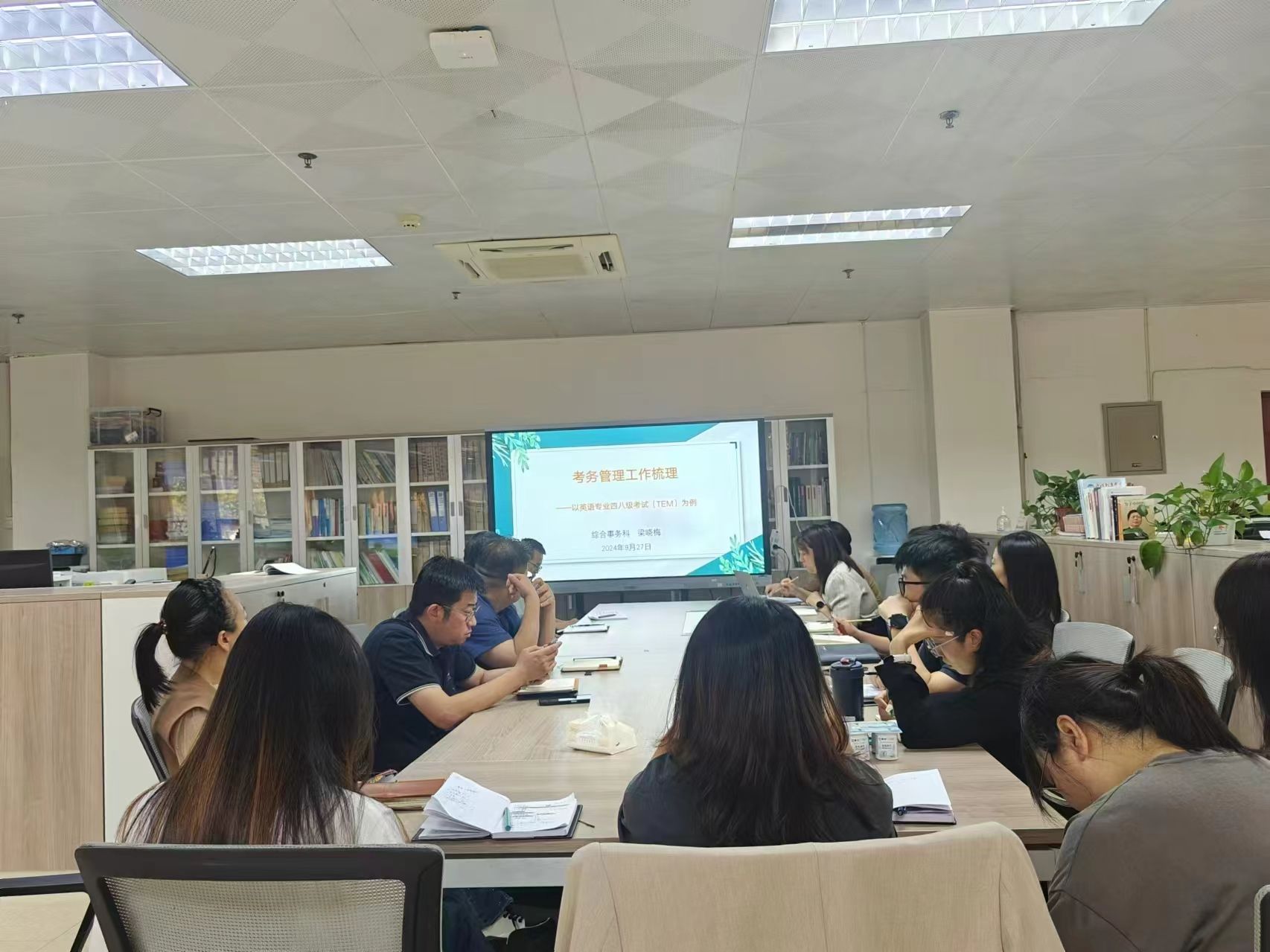 9月27日下午,教务处召开了工作分享会,教务处副处长寇渊涛及全体成员出席,综合事务科科长李慧主持会议。此次,梁晓梅围绕“考务管理工作梳理——以英语专业四、八级考试(TEM-4、TEM-8)为例”主题,分享了考务工作的经验与思考。