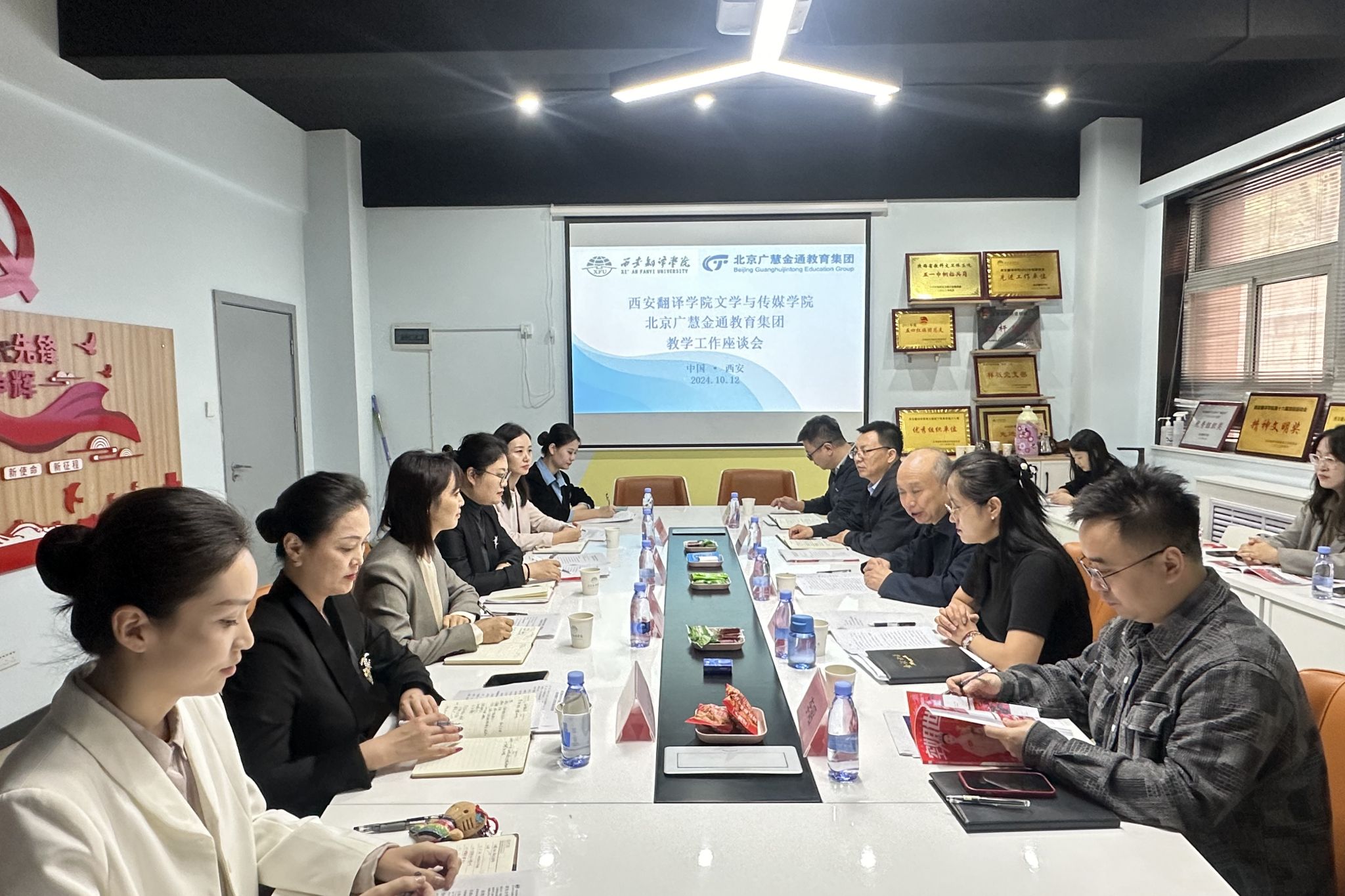 为深化校企合作力度,优化我校教育水平,航空服务艺术与管理专业校企合作单位北京广慧金通教育集团教学管理部副总经理李宏、教务管理室主任续子荷、国际项目负责人李卓聪一行,于10月12日来我校交流座谈,集团驻西安翻译学院工作处主任林英陪同。我校文学与传媒学院院长亢西民,党委书记、副院长李绍先热情接待来宾。