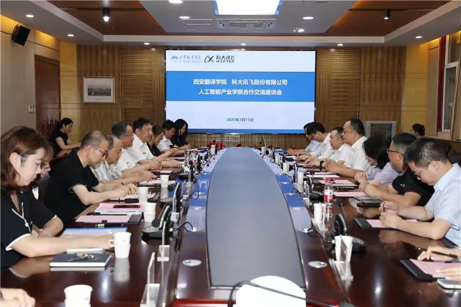 7月11日,西安翻译学院与科大讯飞股份有限公司人工智能产业学院举行合作签约仪式。科大讯飞股份有限公司副总裁孙亮、高教人才培养业务线总经理马季、丝路总部总经理彭梦明,西安翻译学院校长崔智林,信息工程学院院长葛海波、副院长王艳丽、尤国强,及其他有关职能部门负责人参加会议。会议由副校长王霖主持。
